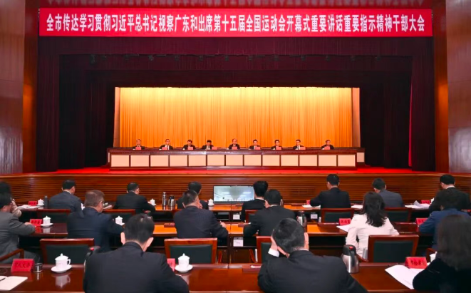 郭文海强调,深入学习宣传贯彻习近平总书记视察广东和出席第十五届全国运动会开幕式重要讲话重要指示精神,是当前和今后一个时期全市头等大事和首要政治任务。